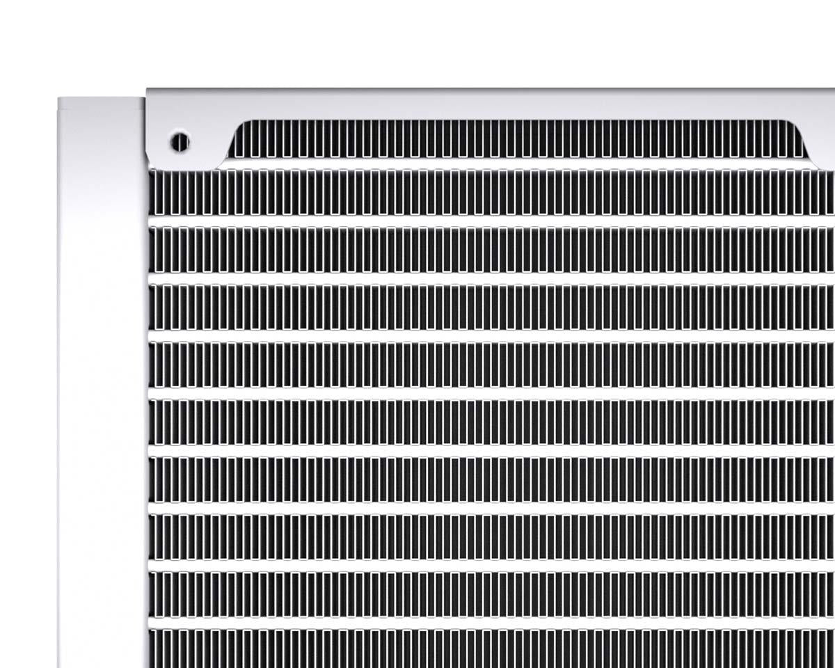 La superficie de transferencia de calor está construida con aletas UTTERIGHT contorneadas en ángulo recto. Este diseño maximiza la transferencia de calor y aumenta la eficiencia en comparación con las aletas comunes.